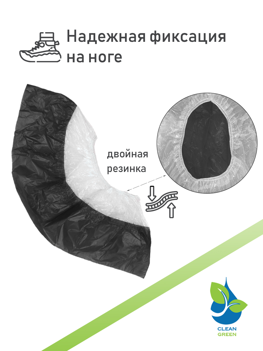 - Резинка: двойная латексная, оплетённая нитью, пропаяна по всей длине бахилы