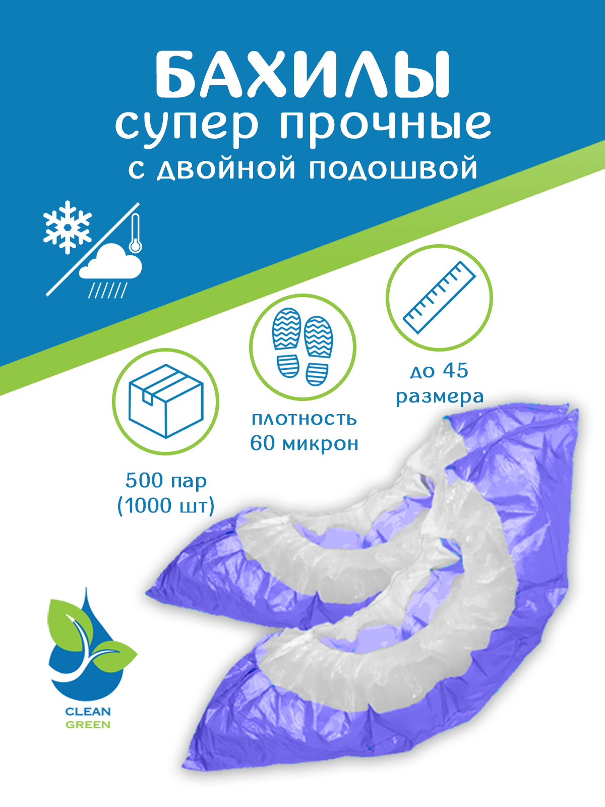 - Резинка: двойная латексная, оплетённая нитью, пропаяна по всей длине бахилы
