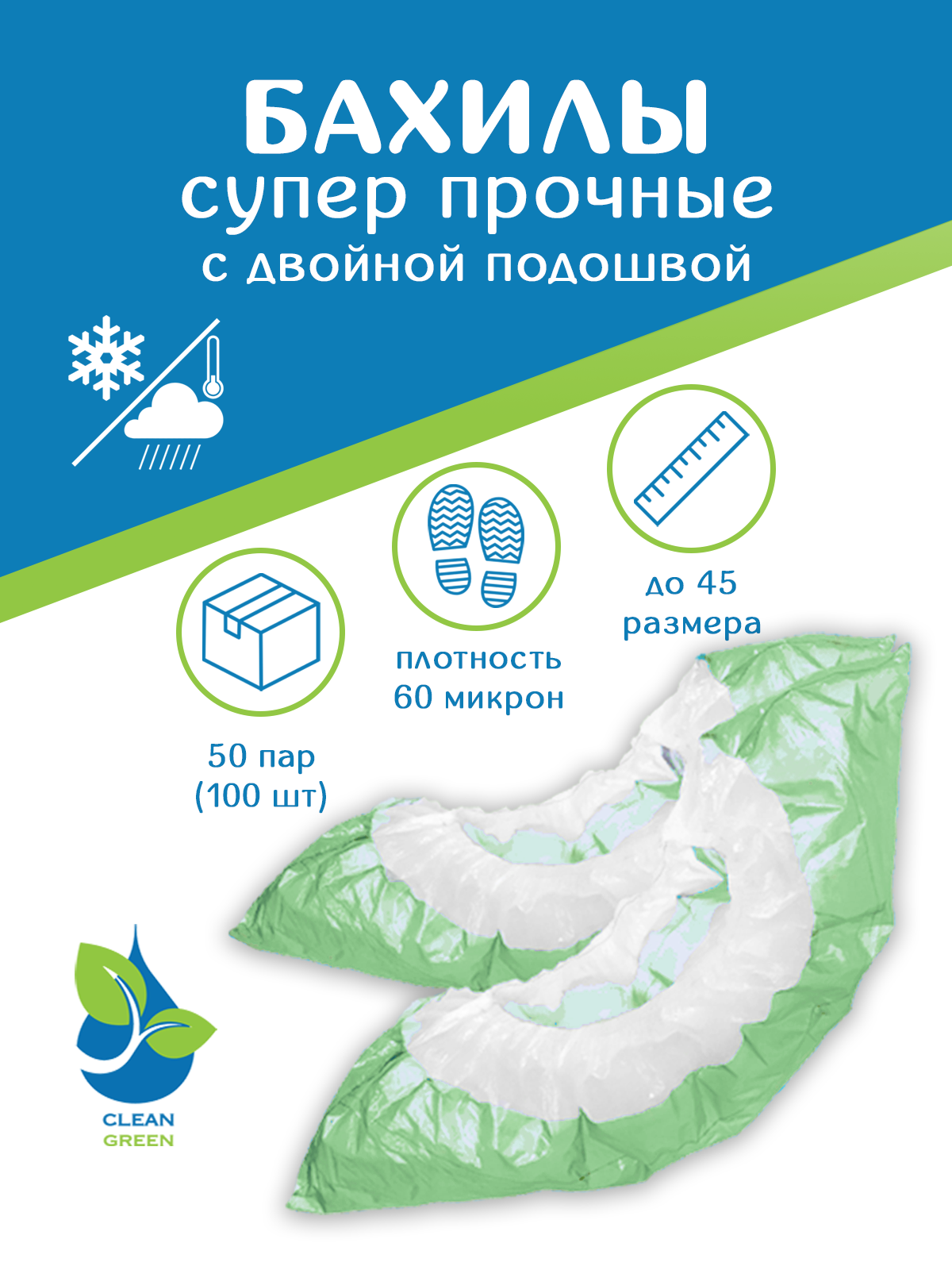 - Резинка: двойная латексная, оплетённая нитью, пропаяна по всей длине бахилы